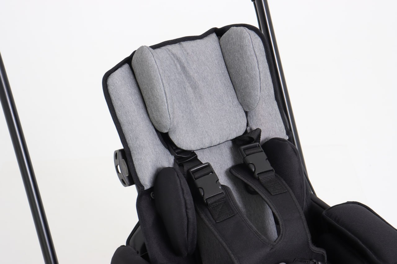 Система поддержки включает регулируемые грудные и бедренные пелоты, 4-точечные ремни с регулировкой по высоте и элементы поддержки головы. В зависимости от выбранного торгового предложения коляска комплектуется короткой спинкой с подголовником Hexagon или длинной спинкой с регулируемыми стабилизаторами головы.