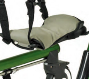 Мягкий фиксатор грудной клетки поддерживает туловище в требуемом положении. Высота фиксатора, угол его крепления и объем (под различные размеры туловища) регулируются. Все регулировки осуществляются, когда пациент находится в опорах-ходунках, что обеспечивает максимальную точность подгонки.