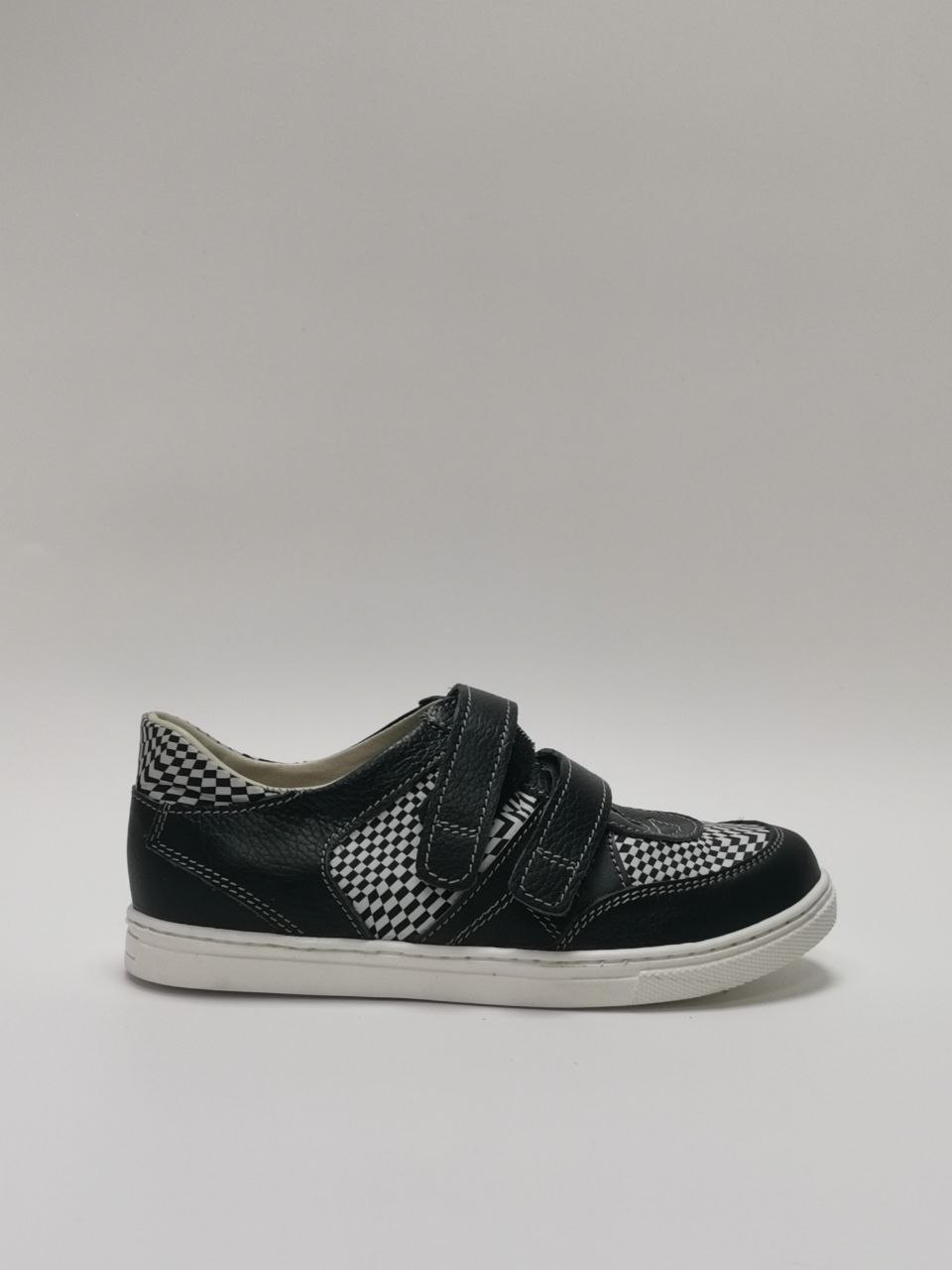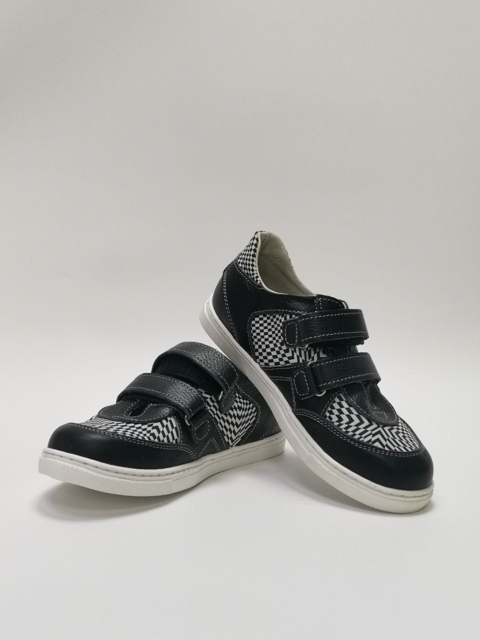 Полуботинки кроссовочного типа на 2-х ремнях и застежкой «велькро» с жестким внутренним задником, продленным до пучков. Верх – кожа. Кожподкладка.