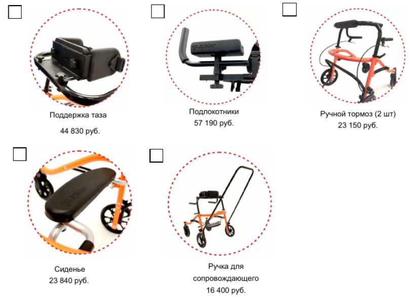 Задние колеса имеют больший диаметр и оснащены антиопрокидователем. Задние колеса ходунков go.spider оснащены регулируемым замедлителем, который снижает скорость движения при затягивании винта. Они также имеет защиту от неконтролируемого движения назад, что оказывает существенное влияние на безопасность при использовании.